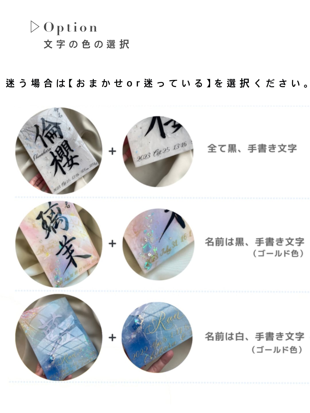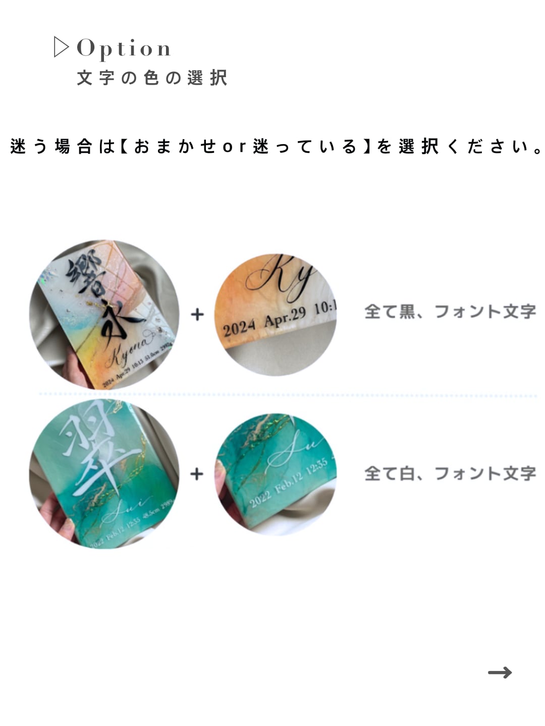 • 文字色:黒/白/ゴールド等