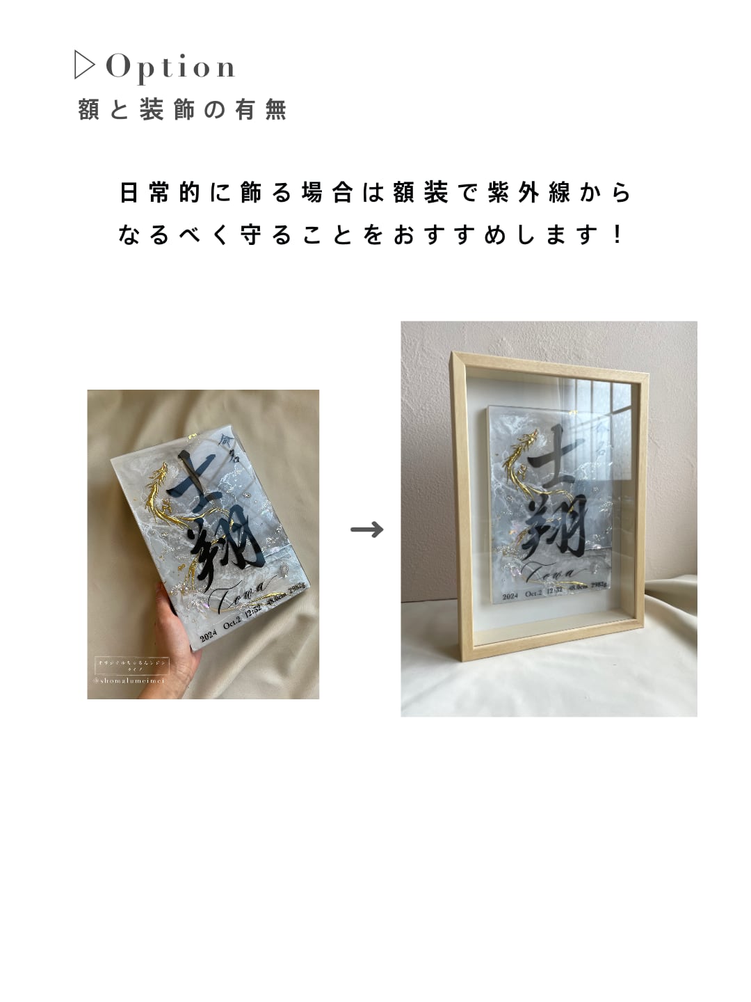 • 額装&額装飾:あり/なし