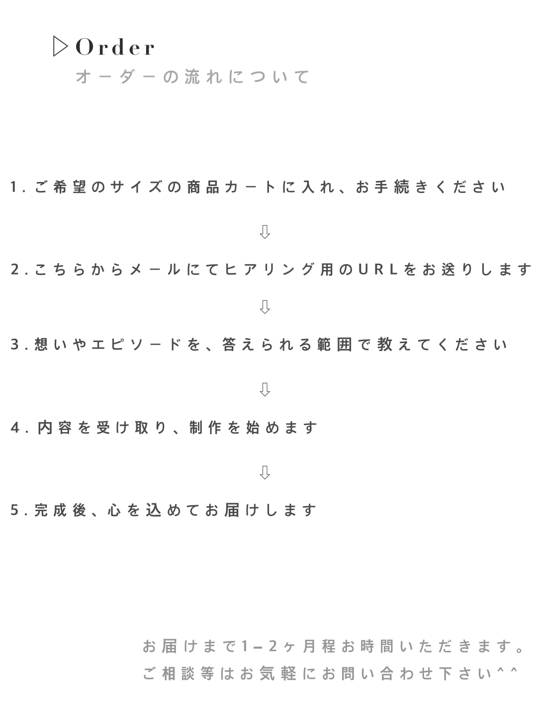 完成まで 約1〜2ヶ月 お時間をいただいています。